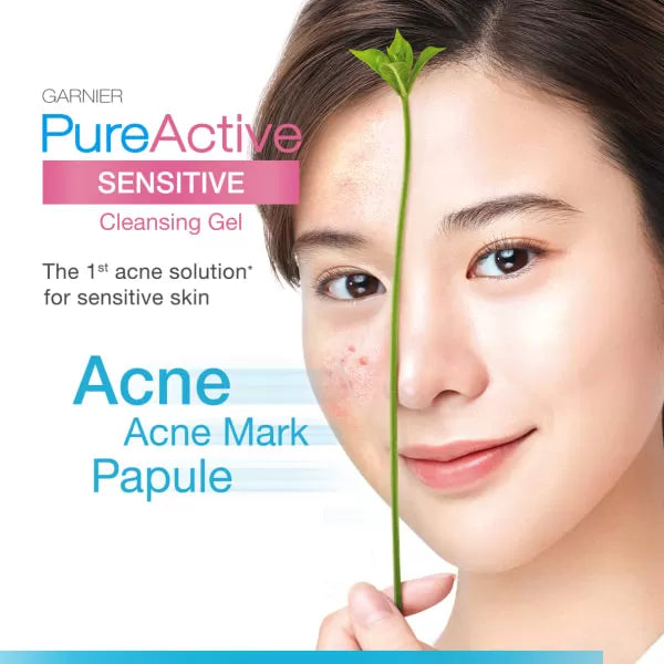 - Garnier Pure Active Sensitive Cleansing Gel is designed for gentle yet effective cleansing of sensitive skin.