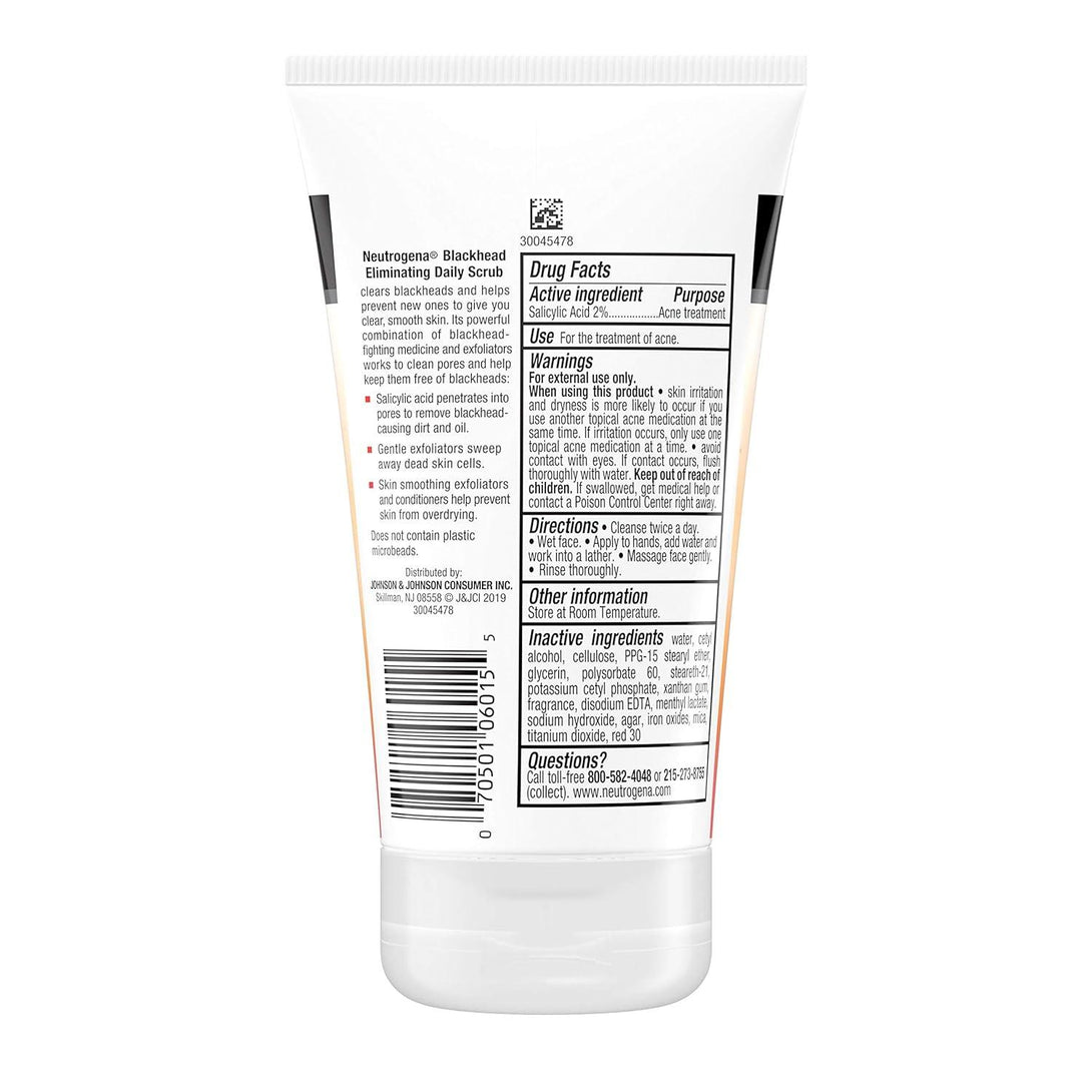 Neutrogena Visibly Clear Blackhead Eliminating Daily Scrub contains gentle skin-soothing microbeads that exfoliate dead skin cells without over-drying to helps top blackheads before they start.