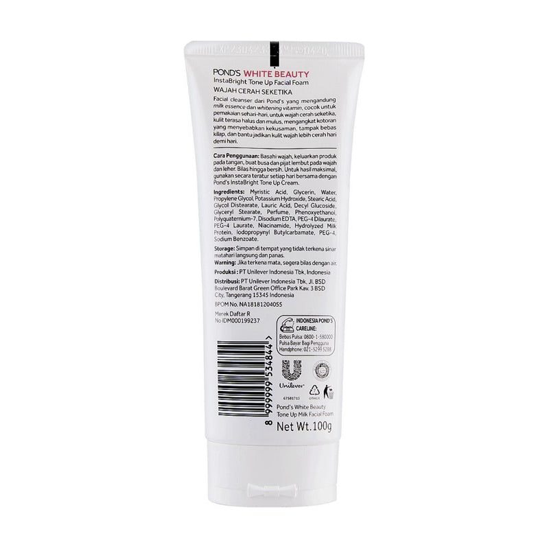 Ponds White Beauty Insta Bright Tone Up Facial Foam 100g is formulated with Milk Protein and Vitamin B3 to cleanse and moisturize skin. It effectively reduces dark spots and brightens the skin tone.It’s Pond’s first skin-lightening milk facial cleanser that provides instant glowing skin after every wash. It moisturizes and provides instant facial skin lightening after cleansing with soft lather enriched with milk protein to moisturize smooth skin, whitening VB3 + to reduce dark spots, and 40x vitamin C to make the skin even brighter close. The White Beauty Instabright ToneUp milk foam from the new pond, which immediately provides radiant skin after every wash, consists of: – Milk protein for moisture for smooth skin – 40x vitamin C for even lighter skin – Vitamin B3 + for reducing dark spots.
