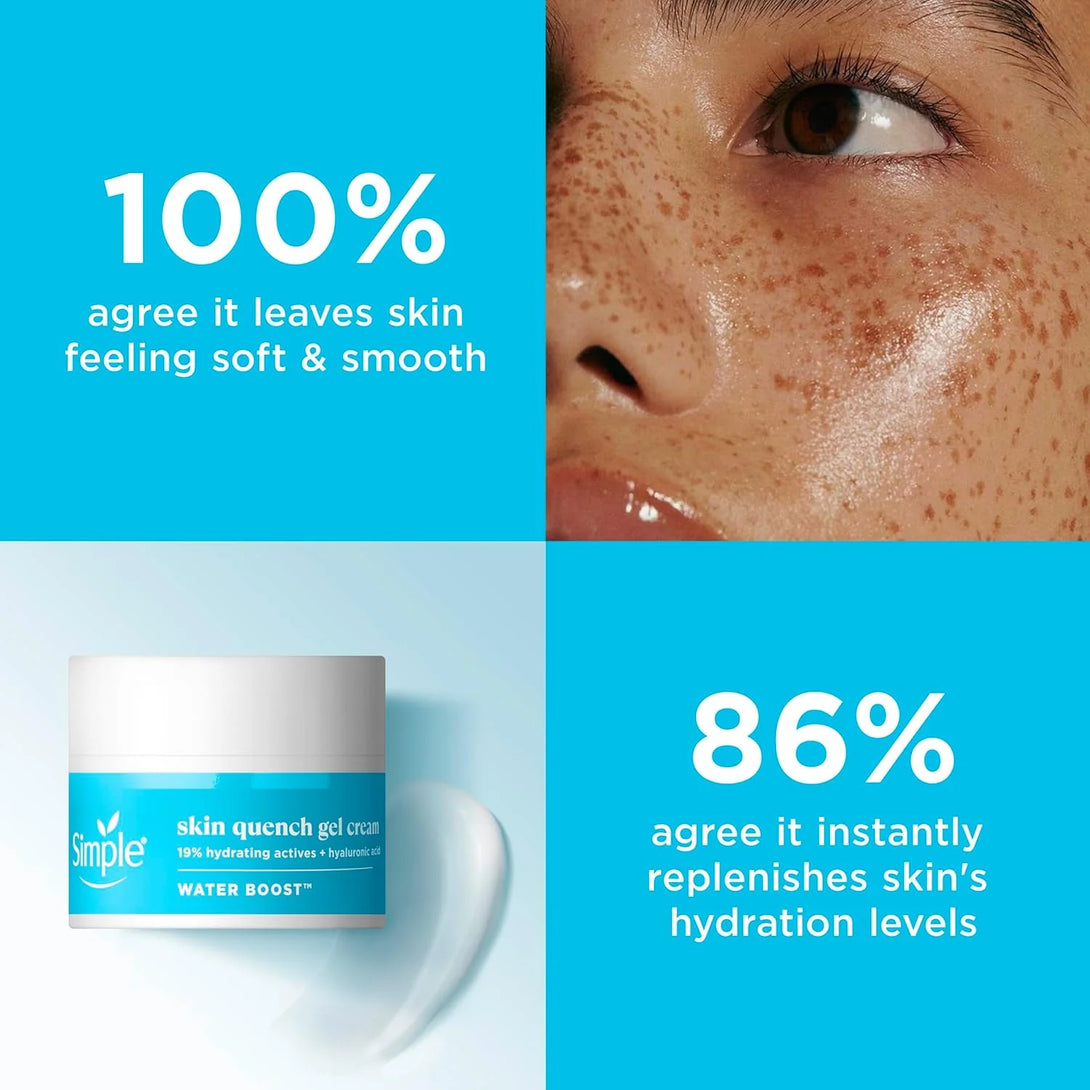 Simple Water Boost Skin Quench Gel Cream is a moisturizer for dry skin from the UK's No. 1 facial skin care brand that promises to hydrate your skin instantly.